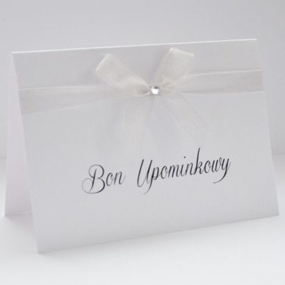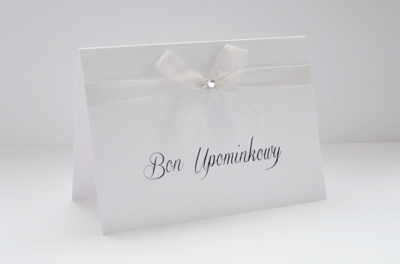 Eleganckie BONY PODARUNKOWE w minimalistycznym stylu z wysokiej jakości papieru 248g. Drukowane przy pomocy drukarki laserowej wyposażonej w wysokiej jakości druk laserowy oraz składane za pomocą urządzenia. Bony podarunkowe wykończone satynową tasiemką.